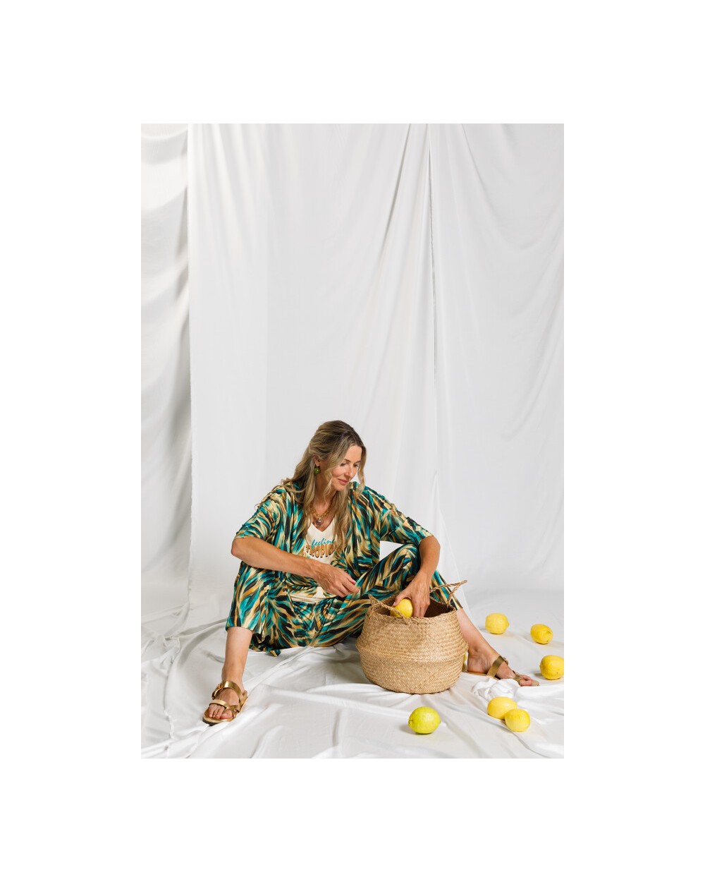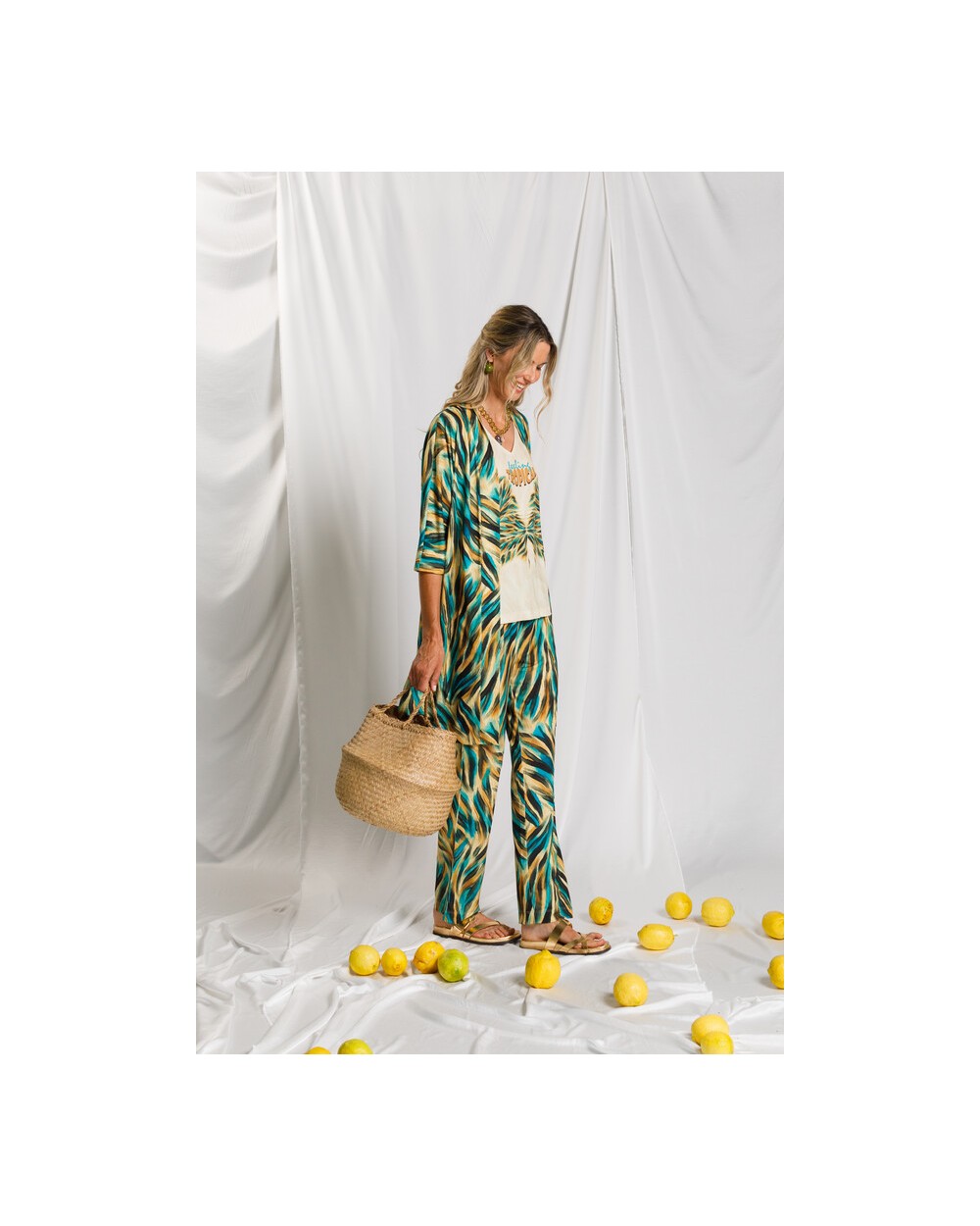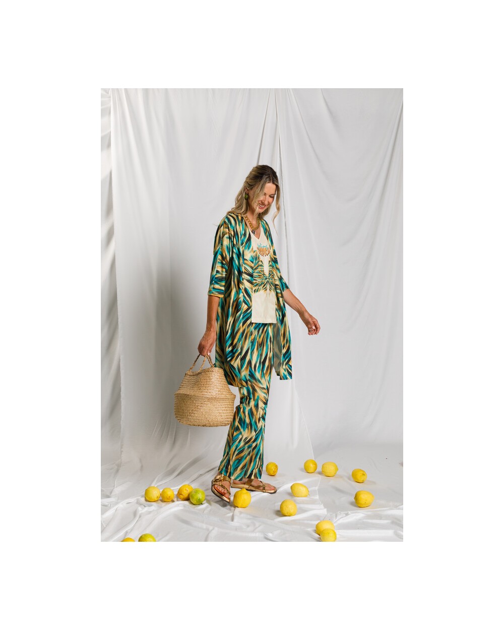 Con un largo de 95 cm, es una prenda versátil y fácil de llevar, ideal para looks veraniegos o para combinar sobre otras piezas con un estilo natural y desenfadado.