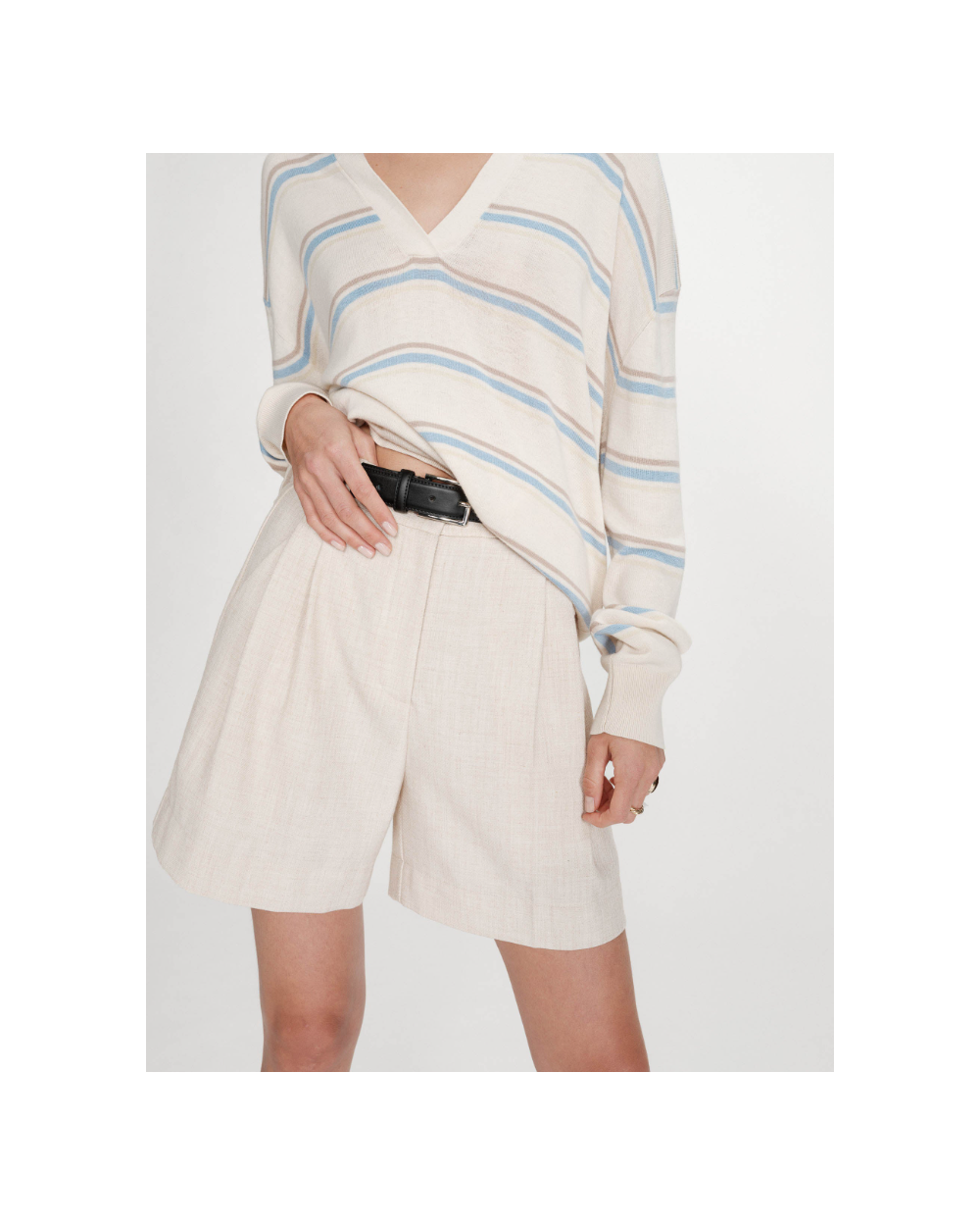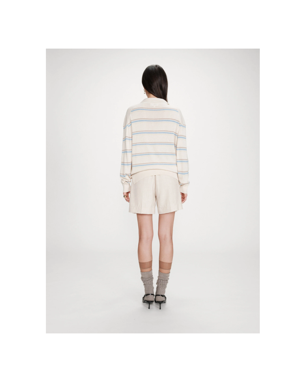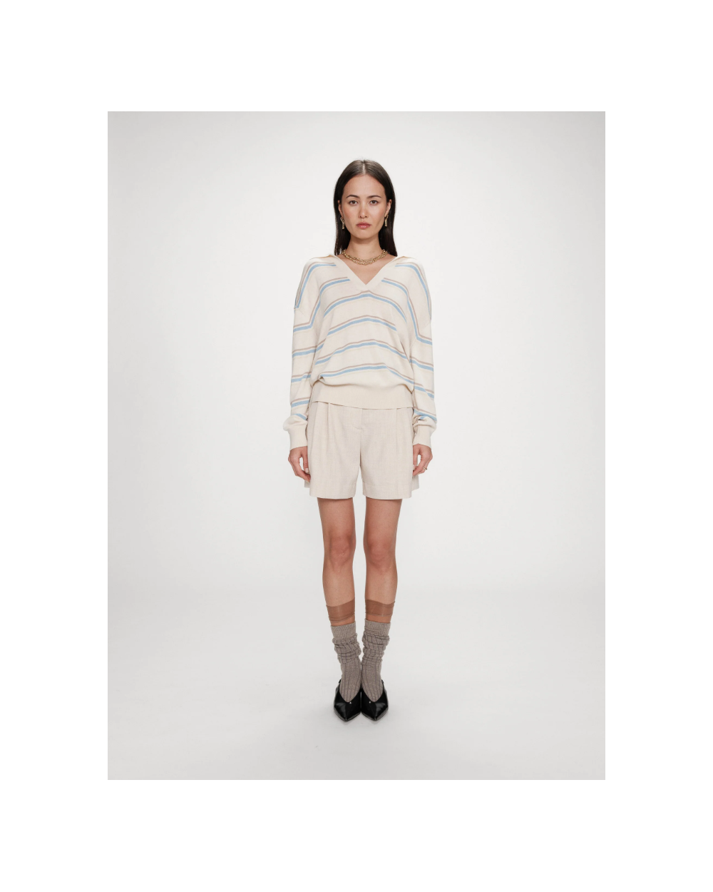 El jersey oversize de VAPORETTO tiene un aspecto casual y atemporal. El cuello polo y las mangas largas se combinan con un fino punto que mezcla seda y lana, para una silueta elegante y sin esfuerzo. El jersey de manga larga de VAPORETTO, disponible en versiones lisas o a rayas, tiene acabados acanalados en los puños y la parte inferior del jersey que estructuran sutilmente la silueta.