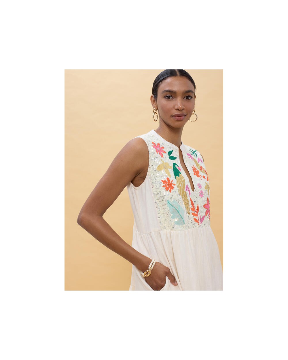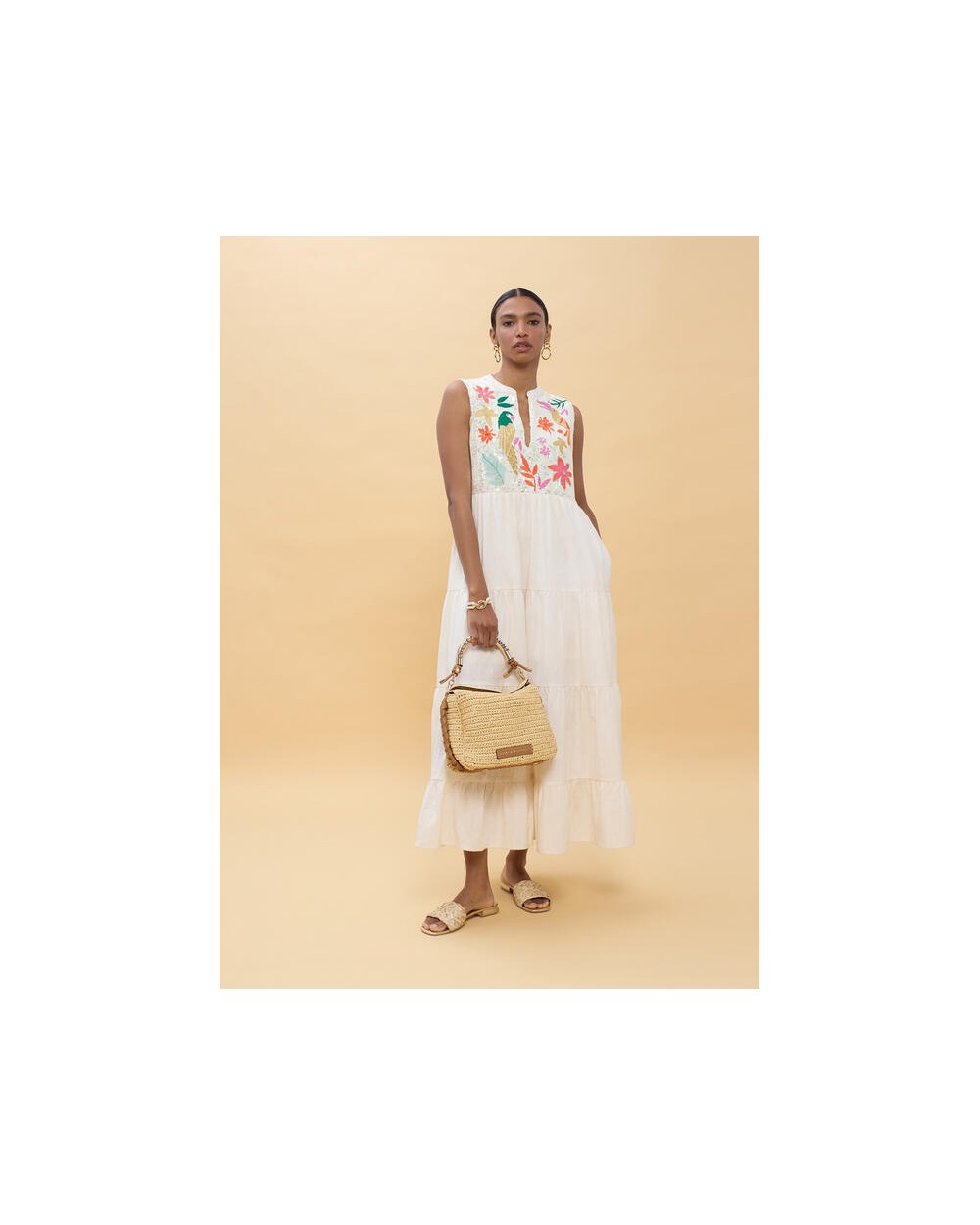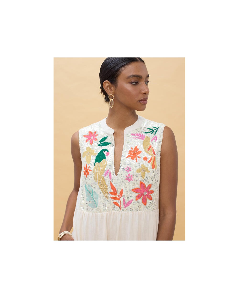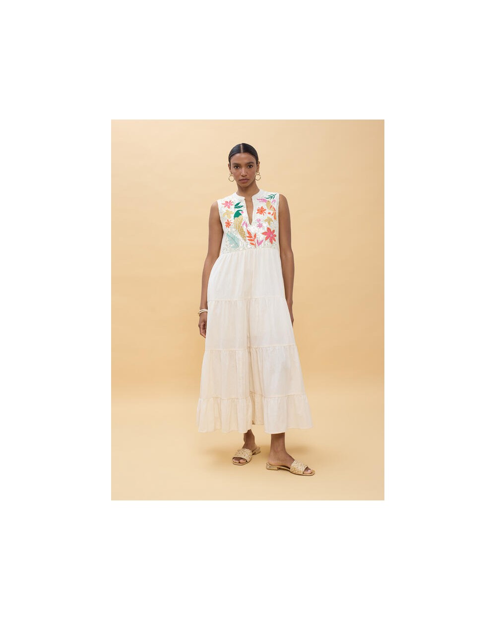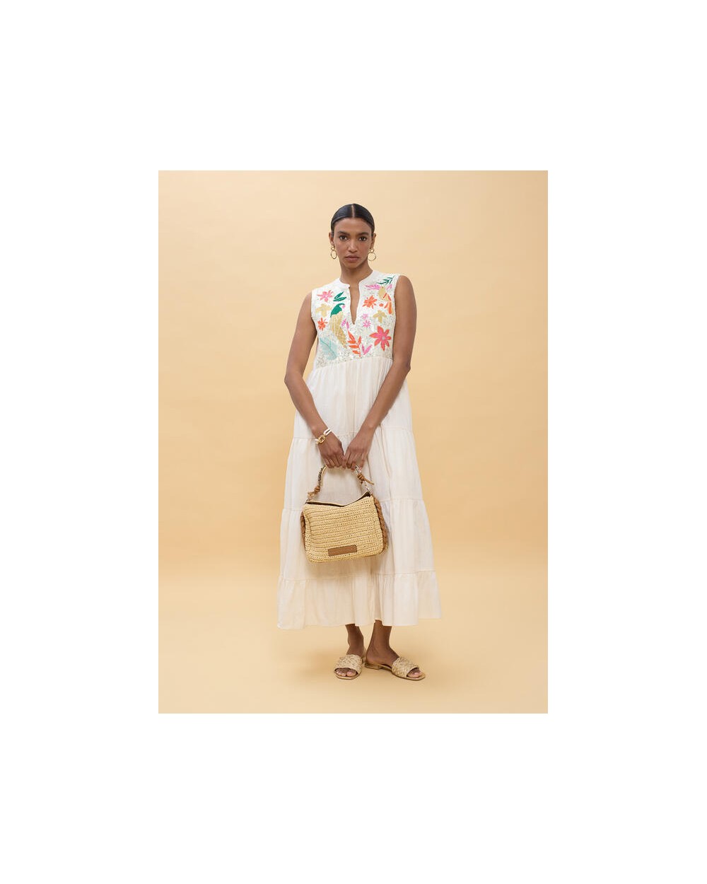 Vestido blanco bordado loros Lola Casademunt