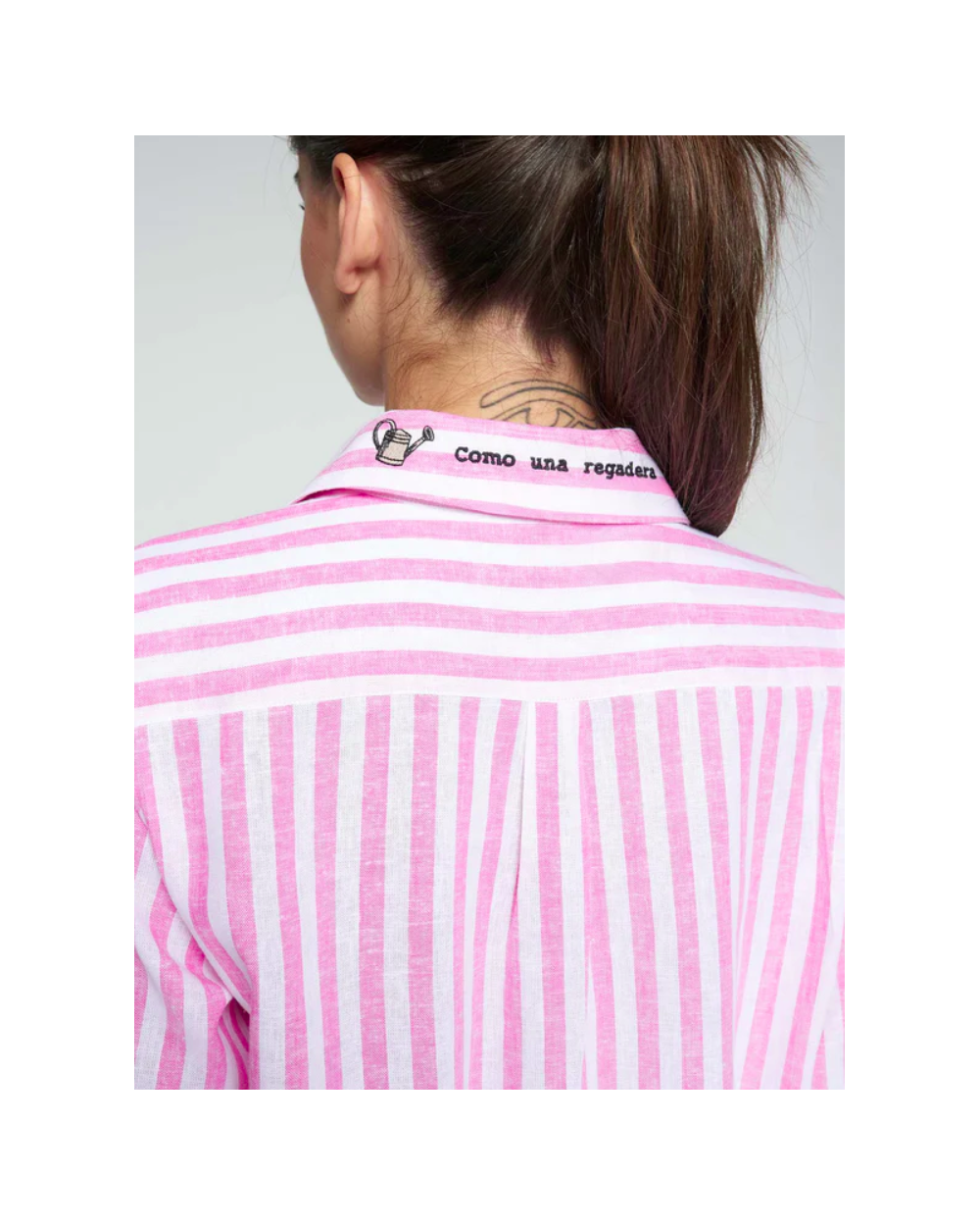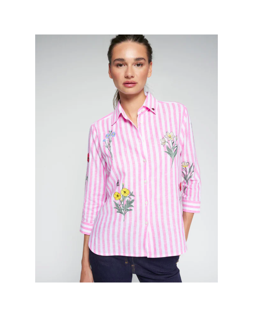 Camisa rayas rosa flores bordada Vilagallo