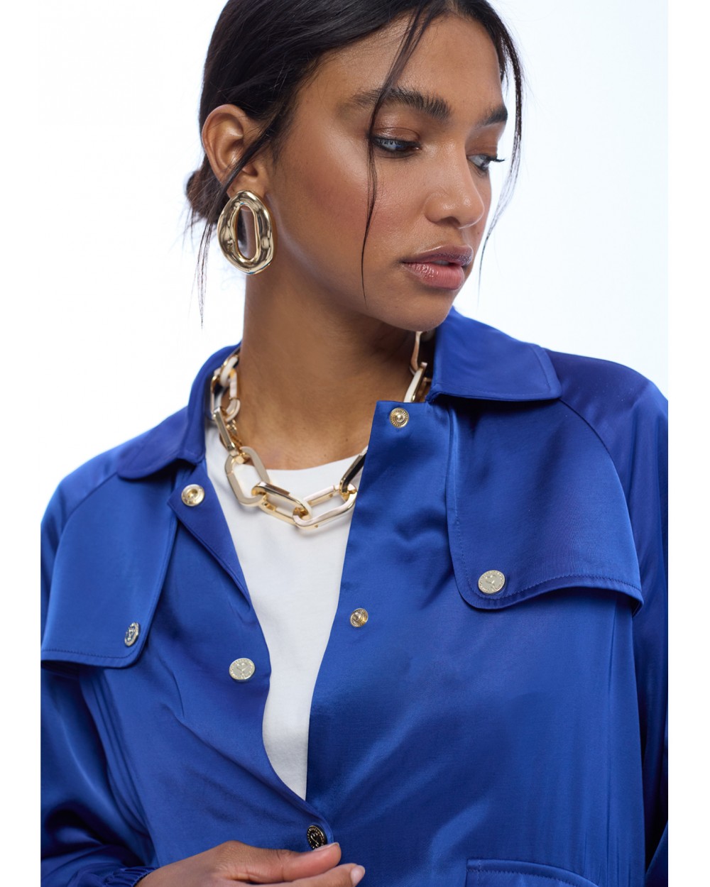 cierre a presión. Acabado satinado que aporta un toque elegante. Ideal para entretiempo y ocasiones casuales.