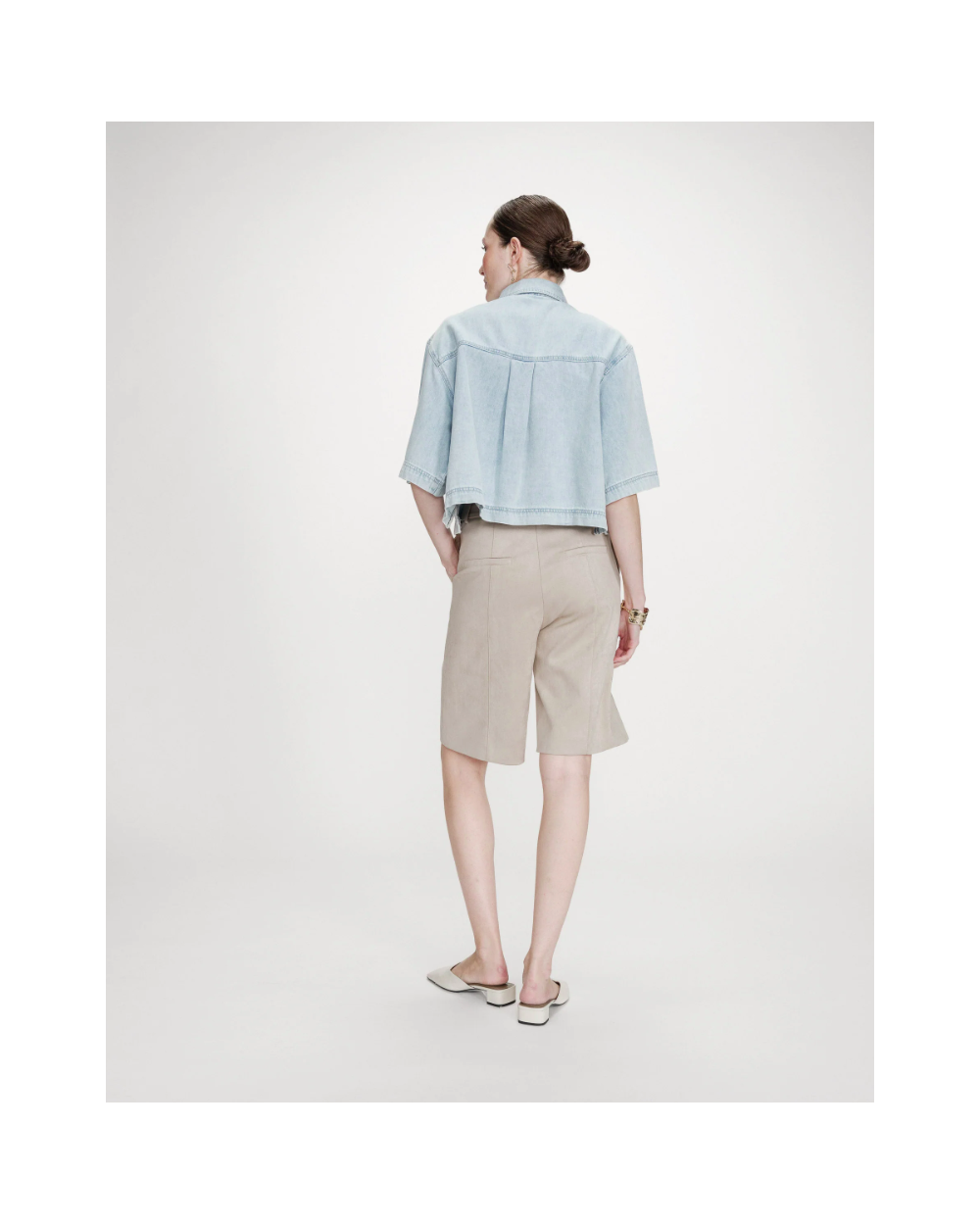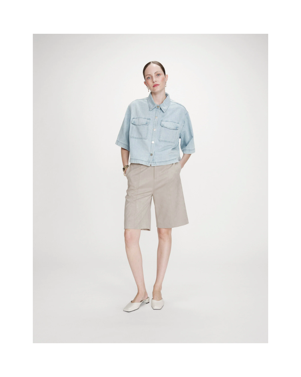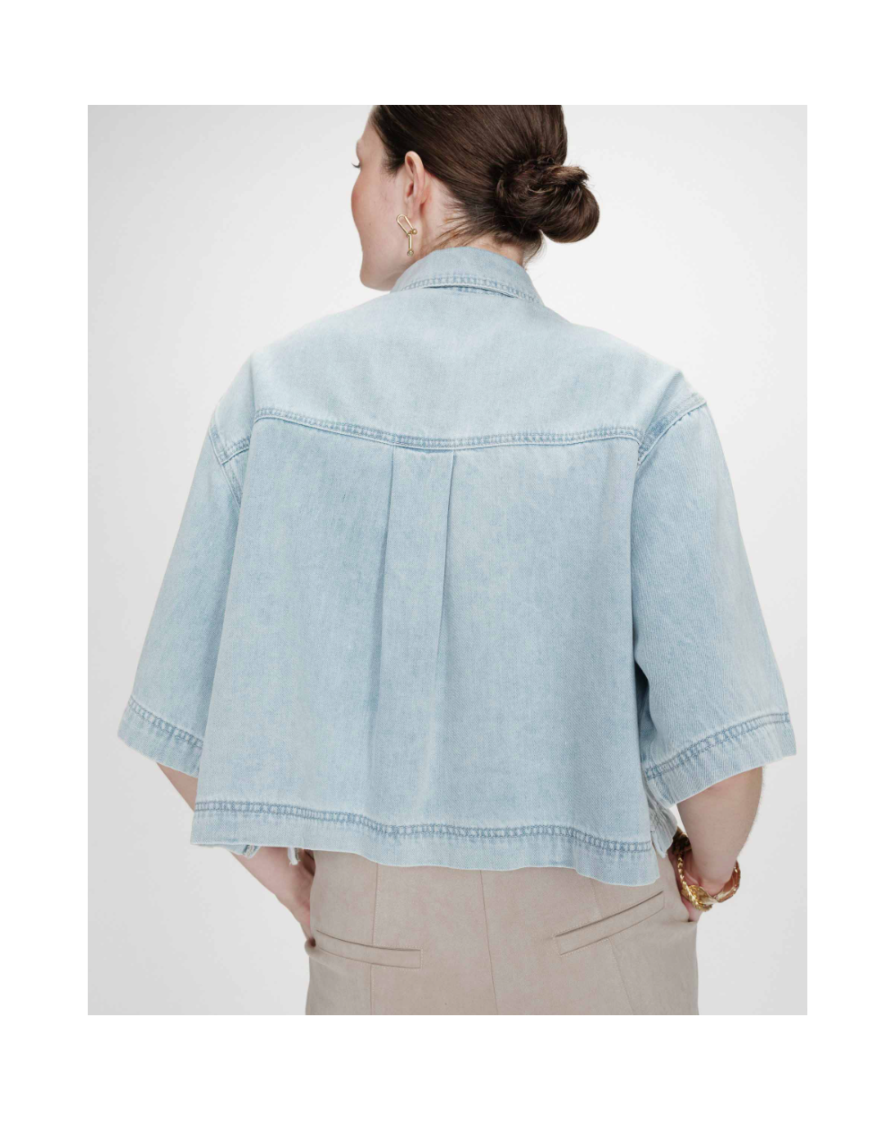 - Camisa vaquera - Corte oversize - Mangas anchas hasta los codos - Cuello clásico de camisa - Bolsillos con parche