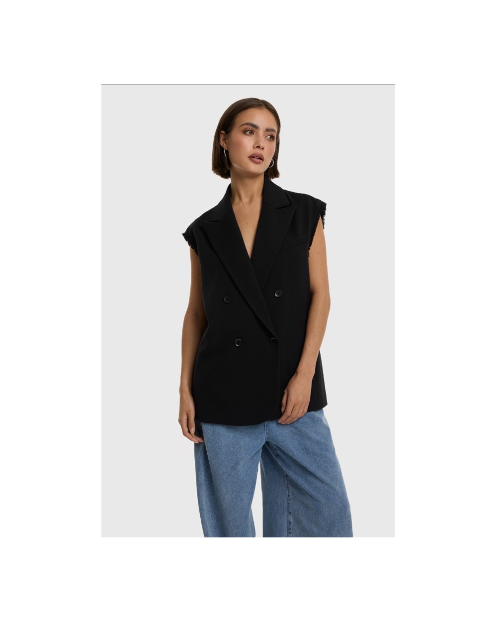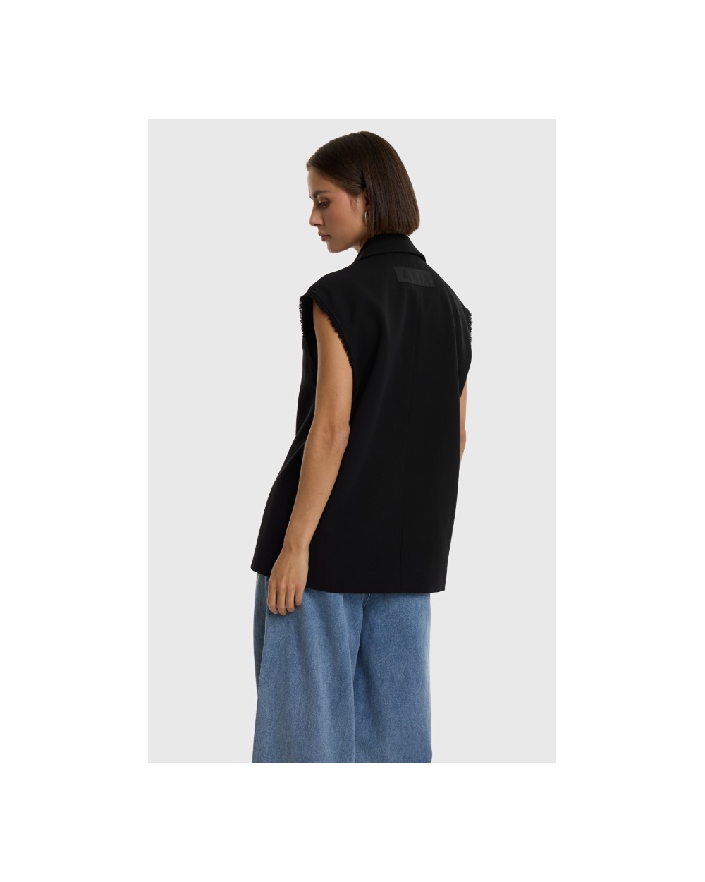 - Diseñado con cierre de botón cruzado y bordes cortados en bruto en la sisa.