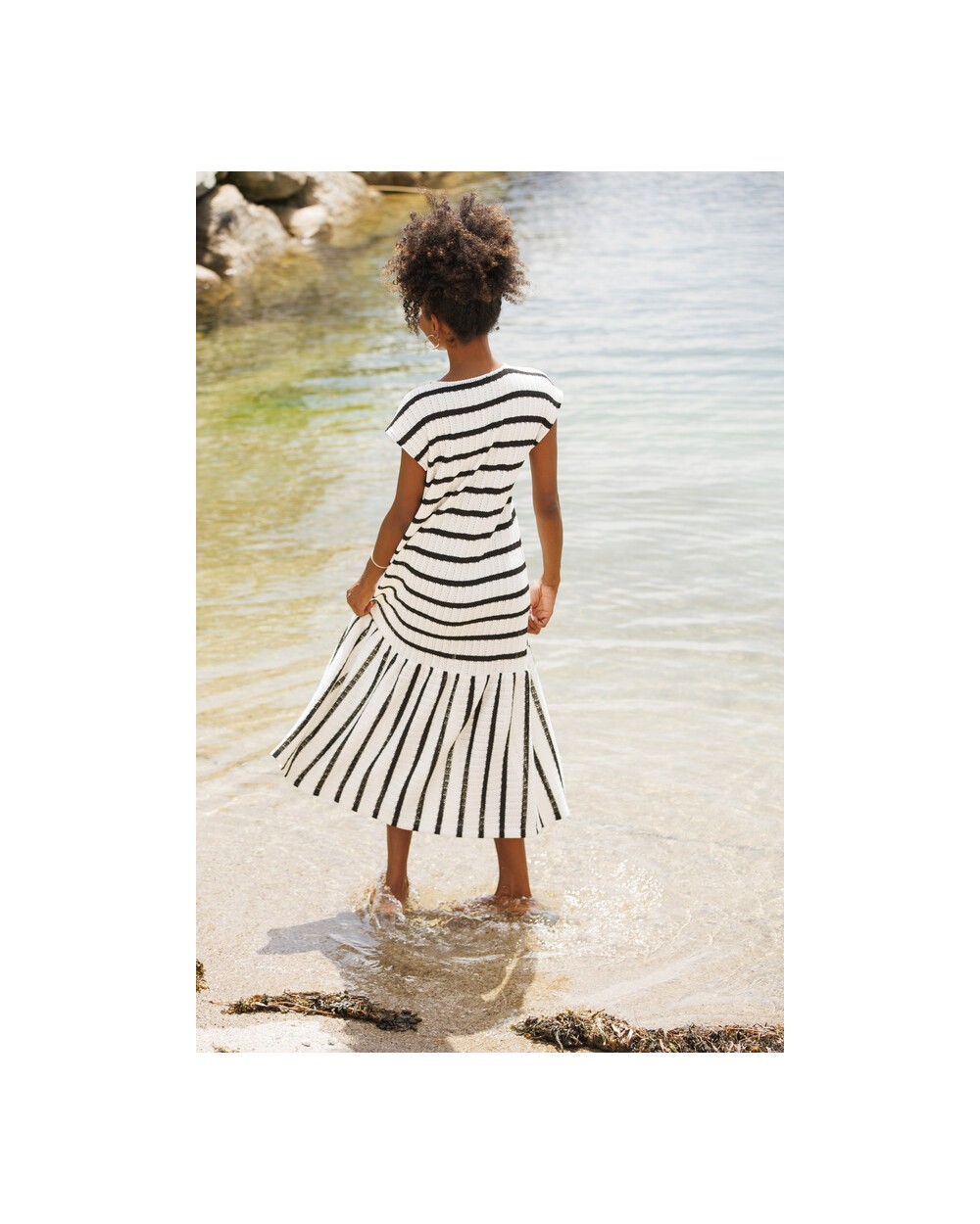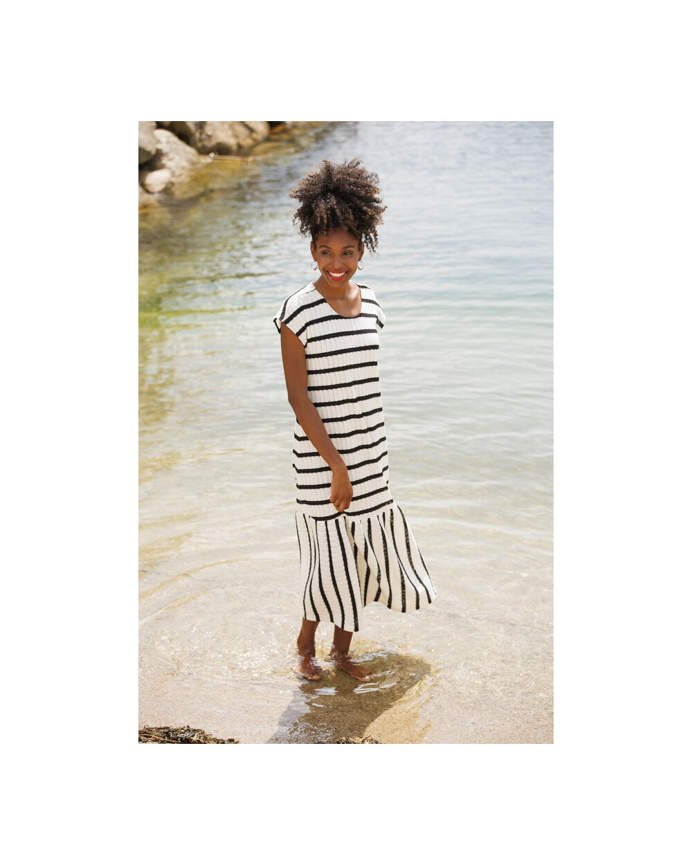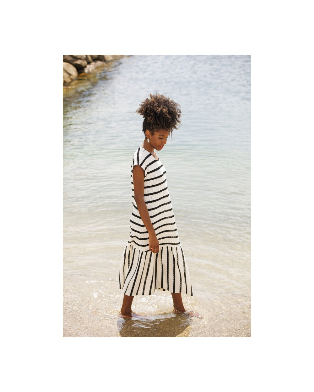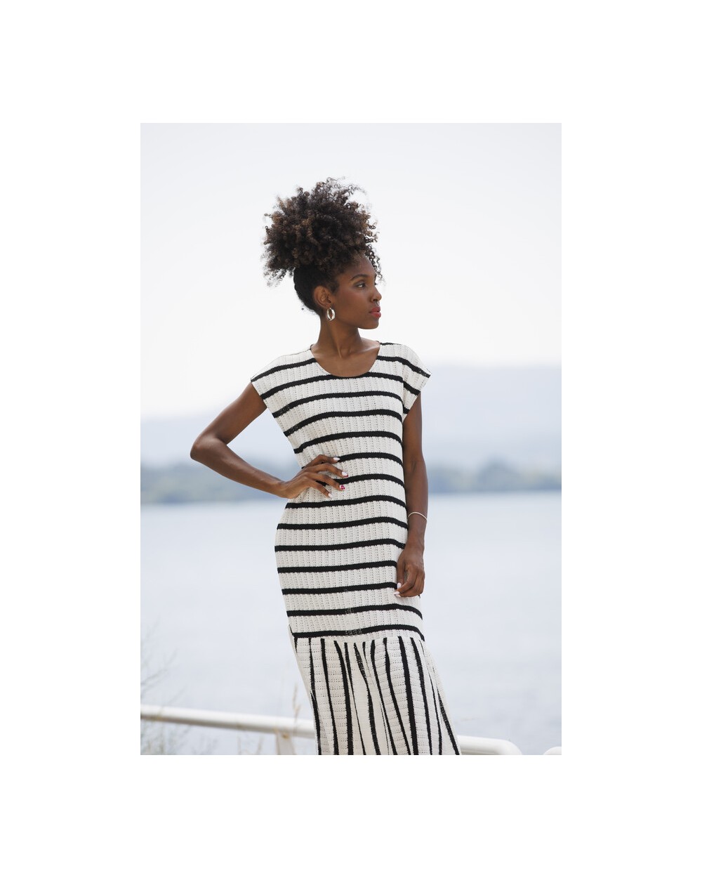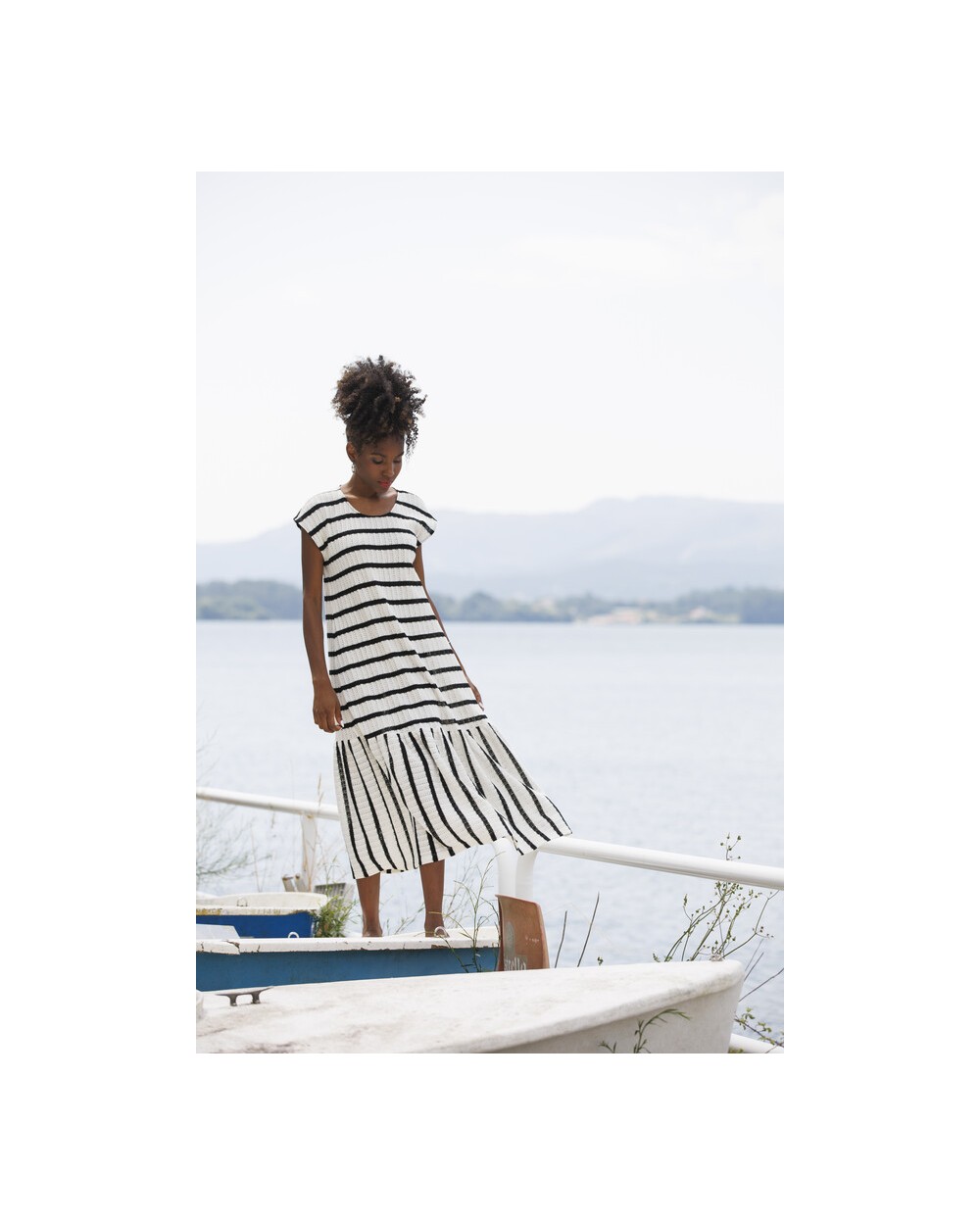 Vestido confeccionado en punto de rayas, de tacto suave y caída cómoda, ideal para un estilo relajado con un toque cuidado. Su diseño aporta ligereza y frescura, perfecto para los días de calor.